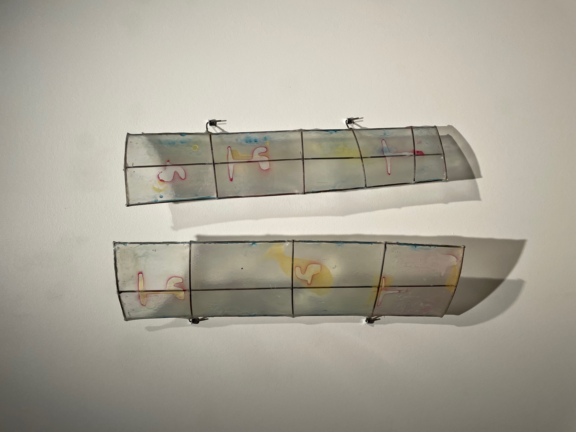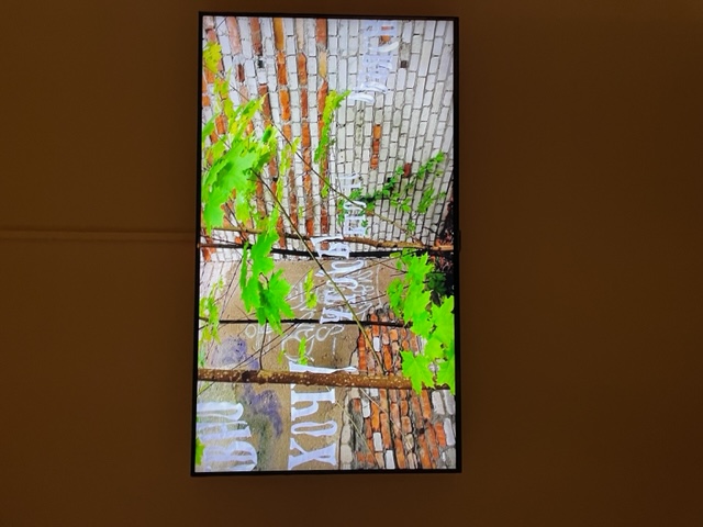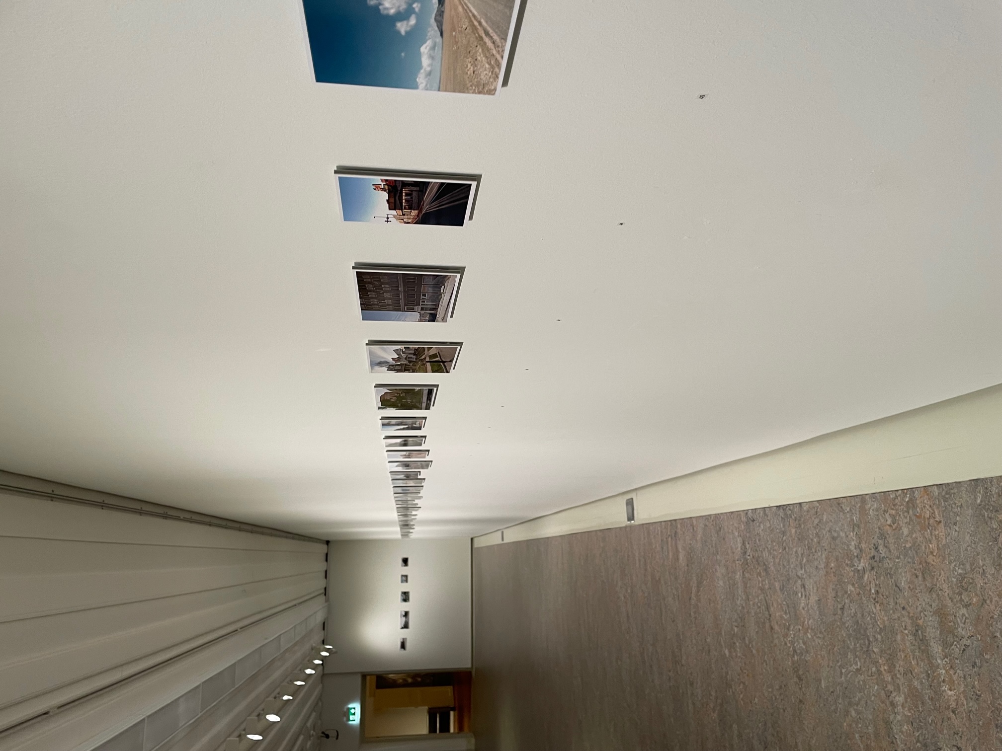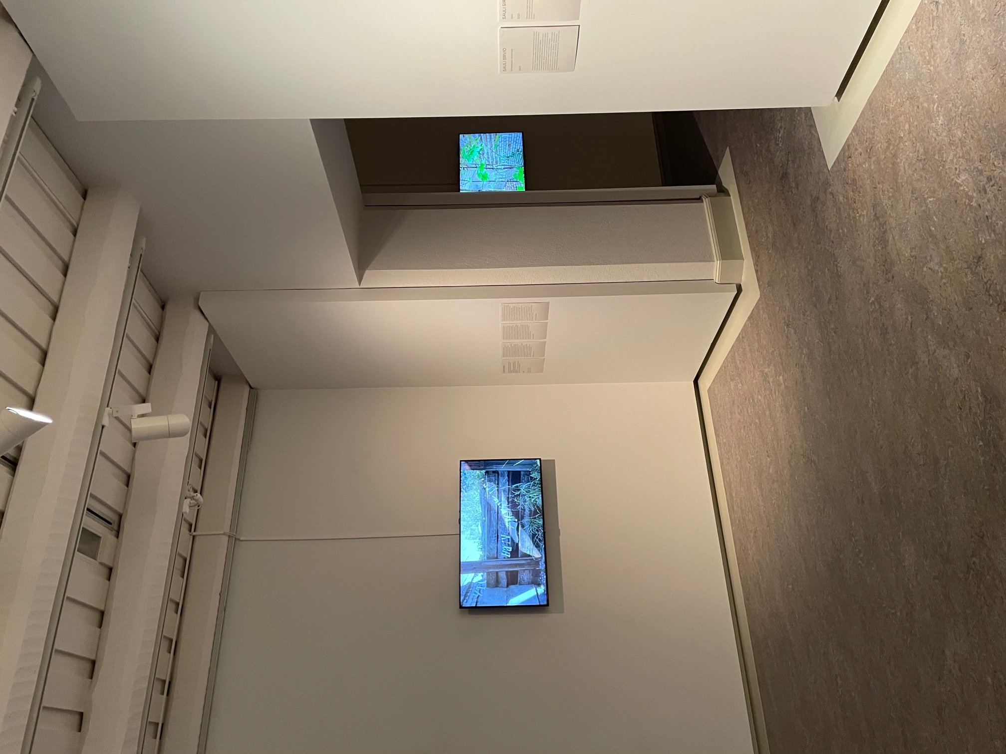 Kuvassa / In the image an installation of the work 'Sketch for a postcard in 2019' by Iona Roisin.