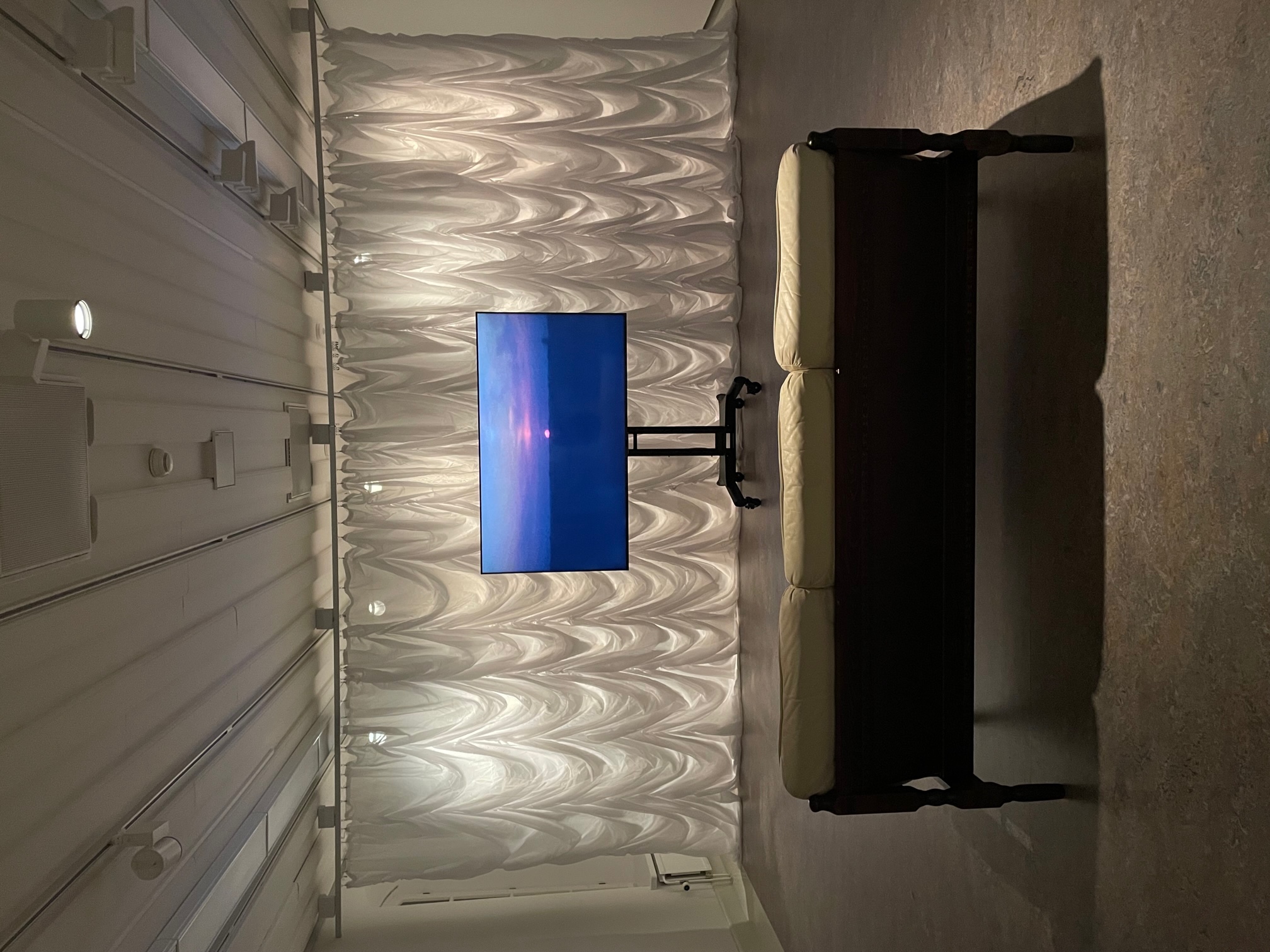 Kuvassa / In the image room with work 'sync' by Sauli Sirviö.